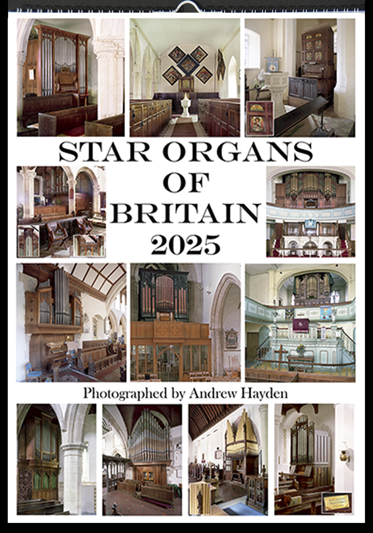 Covid continues to rear its ugly head but undaunted, your intrepid photographer has been out and about with maximum safeguarding to bring you 2022's edition of the Star Organs of Britain calendar.