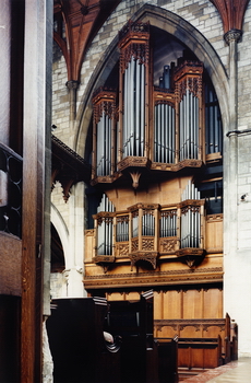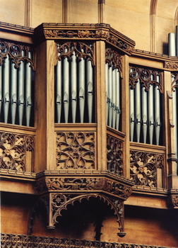 Case designed by Hicks and Charlewood, church architects; carved by Hedley of Newcastle