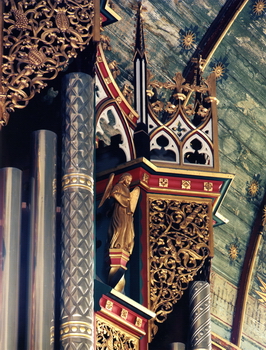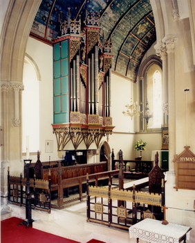 Case said to have been designed by the Rev'd John Gibson, Rector of King's Stanley from 1842 to 1857. It was made by Liddiatt
