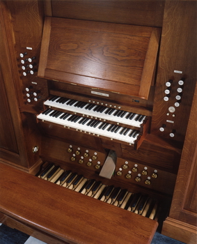 Adjustable music rest, bench and other features designed to make organ accessible to those with disabilities